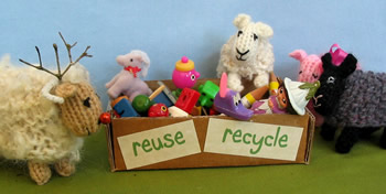 "Let's go there and find out" says Rudolph cheerily. So the three woolly blog-trotters waste no time in climbing into the cardboard sleigh where they sit down amongst the broken toys ready for the journey.
