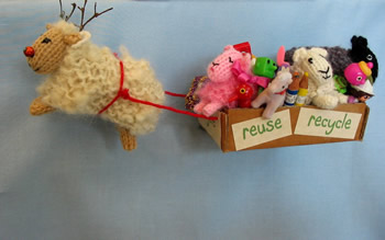 They all agree that the sleigh looks rather like a cardboard box. But Rudolph explains that Santa wants to reduce his carbon hoof-print this year and is using environmentally friendly cardboard to carry toys around the world at Christmas.