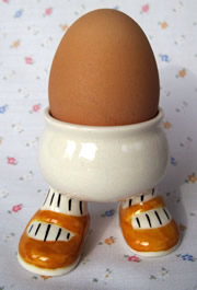 Each little cutie fits snuggly over an egg (real or chocolate!). I'm very fond of these plain white egg cups.