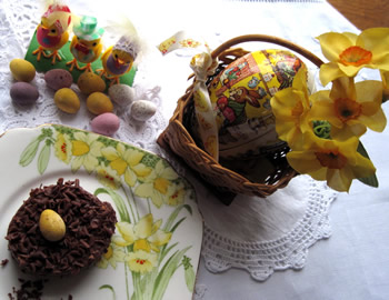 I have no homemade cakes or biscuits to offer you I'm afraid but perhaps you'd like to try an Easter nest cake.