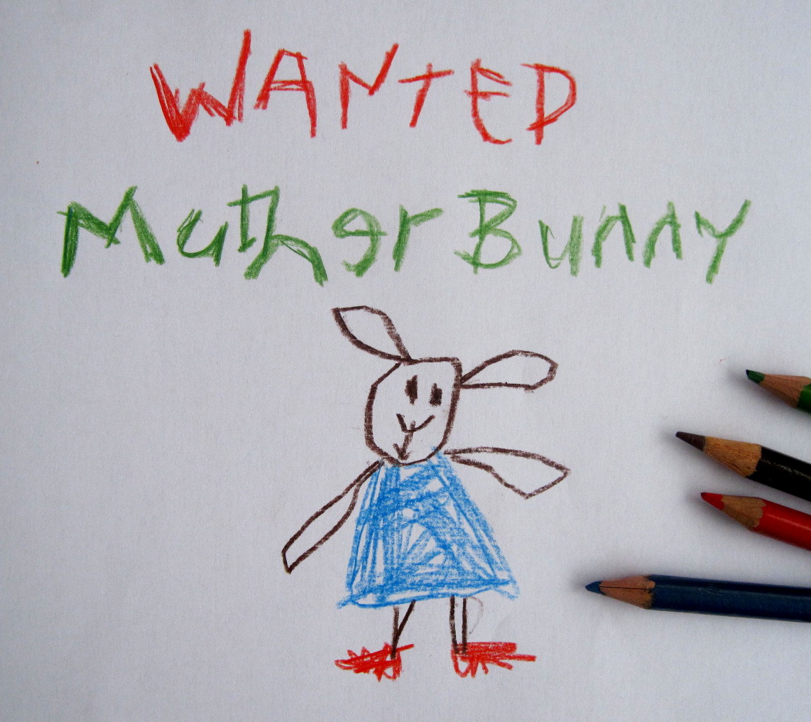 Our search for a mother bunny to look after these little ones continues. The 'Wanted - Mother Bunny' poster we put in the playroom window last week has unfortunately brought no Mother Bunnies to our door. To be honest, I'm not surprised as the five little rascals are such a spirited lot that many mothers would probably want to disown them.