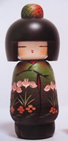 You might prefer to use sewing thread for the features as it is much finer than yarn and will give better results (I used two strands together). The eyes are a single straight stitches in black and the mouth 'v' shaped straight stitches in red. Blushing cheeks are achieved with red pencil crayon.... You now have your own little kokeshi doll and all she needs is her own Japanese style garden!
