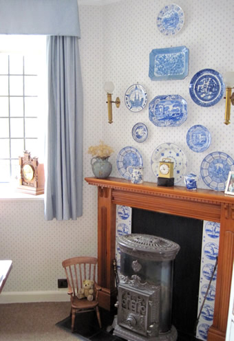 This is our breakfast room (next to the kitchen) and it's a room for all seasons. Cool and calming on hot summer days and toasty warm in winter when the wood burning stove is alight.