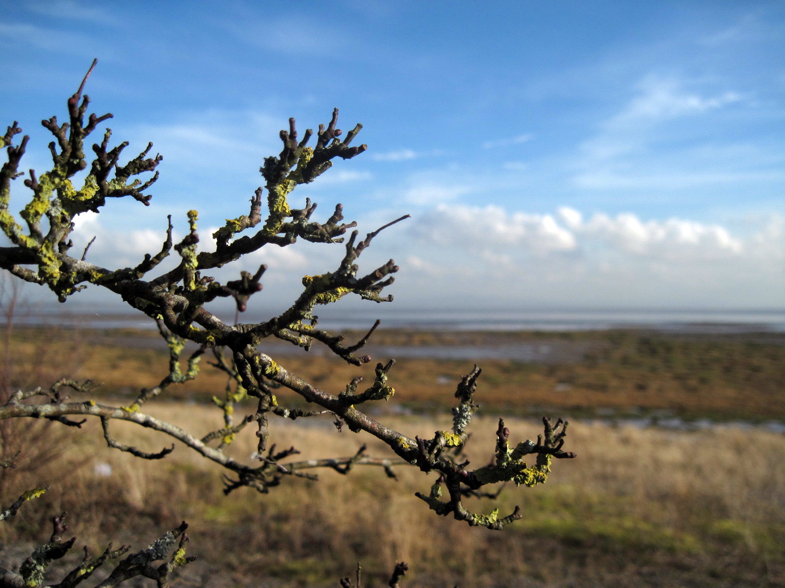 In winter the wind-whipped tree branches are covered in lichen and the dry grasses cling to the gravely shoreline