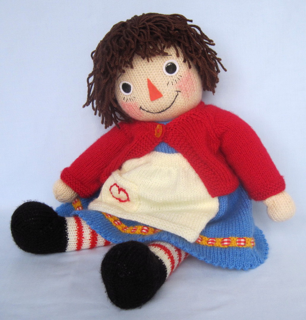 Below is my knitted version of Raggedy Ann. Having read the book about Johnny Gruelle and several of his early stories I was determined to try and recapture the sweet nature of his original Raggedy Ann.