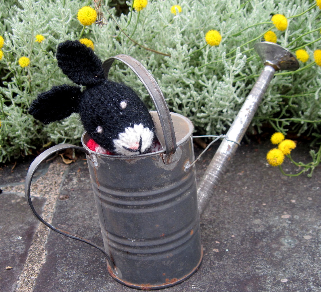 Everyone searched the garden in vain. After quite some time he was spotted with his head protruding from this watering can. The scamp had climbed inside and become well and truly stuck.