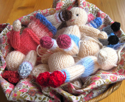 In my last post I promised to let you know about my tiny knitted dolls. Well I'm afraid this is as far as I've got and they are still a work in progress. I'm hoping there will be a pattern available soon but working with the Liberty lawn is proving very difficult to resist and knitting is currently taking second place!