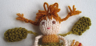 Several of you asked about the little dolly I featured. You quite rightly presumed she was inspired by Waldorf dolls. Her head, which is roughly the size of a conker (horse chestnut), is made using the Waldorf method. It was quite a fiddly process working on something so small but I've always loved making miniature items and so persevered. She measures 15cm (6in). Her arms and legs are covered pipe cleaners, her hair is mohair knitting yarn, her dress is Liberty lawn and her cardigan is knitted with 4 ply Shetland wool. The head and features of the little fairy found by Tilly and Kate is also Waldorf inspired.