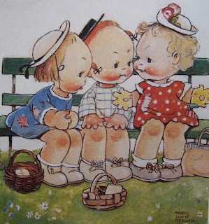I'm sure the inspiration for these dollies must have come from the wonderful illustrations of Mabel Lucie Attwell. Don't you just love her rosie cheeked children with plump little legs and short dresses.