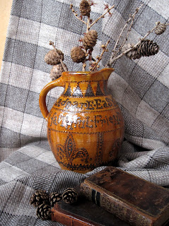 And so today I borrowed the book of fabric samples and here it is beside the window with one of my daughter's model ships to add atmoshere.
