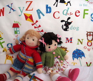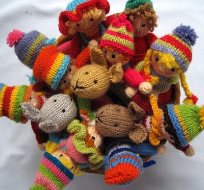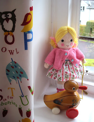 Although both my children now have their own homes their old bedrooms still contain remnants of their childhood years. I'm currently decorating my son's old room and have been deliberating long and hard about which colours to use. The walls and paintwork are white but a number of colourful old toys sit on the shelves. I now use the room for my growing family of knitted dolls and craft items and so have set my heart on primary colours as opposed to the pastel pinks and blues I normally prefer.