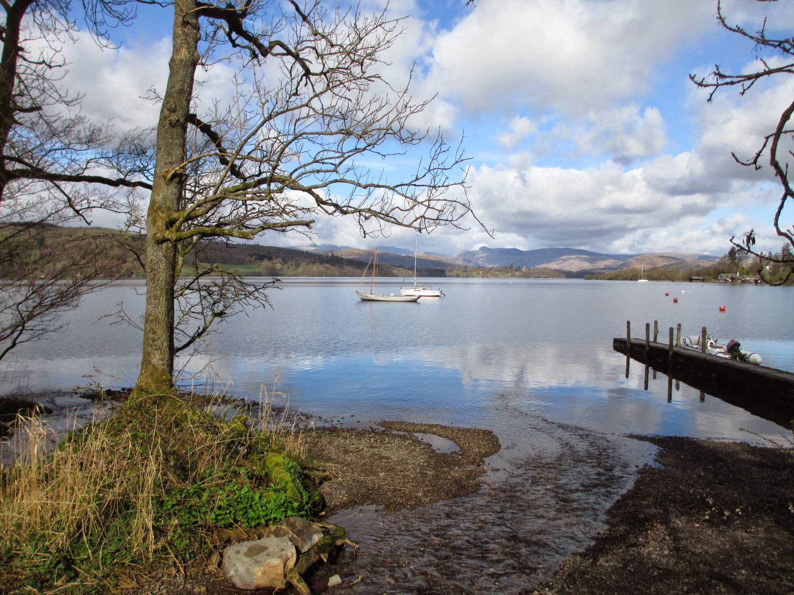 Windermere lake with the Lakeland fells (mountains) in the distance.